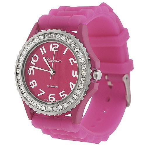 Compare Geneva Platinum CZ Accented Silicon Link Watch Fuschia